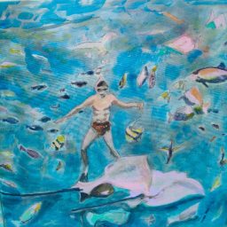 After the years of virtuoso experimentation in which his research coincides with travel notes and the eye follows the hand in the search for that particular evocation of the different realities, from time to time encountered, particularly the underwater world, using mainly watercolor and India ink, in his more recent production emerge, as if put to flight by the urgency to get out, more symbolic figurations that favor the acrylic technique and its greater chromatic power.