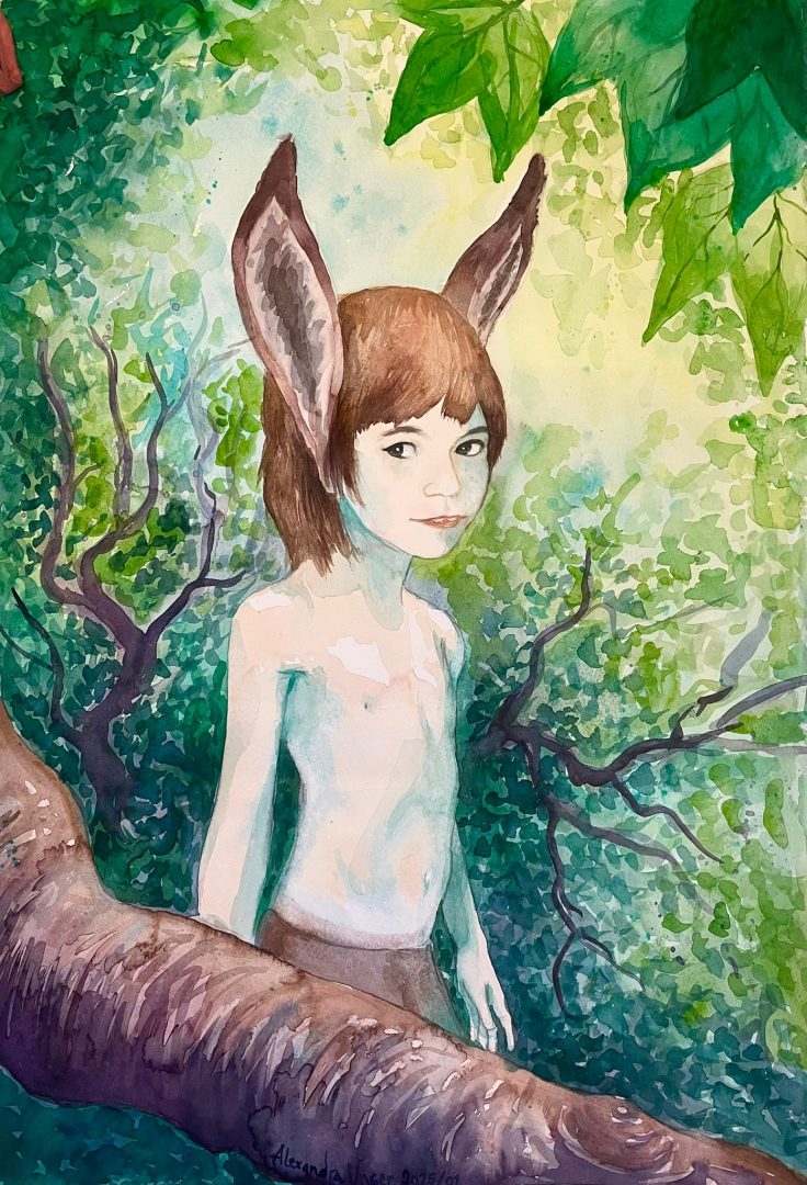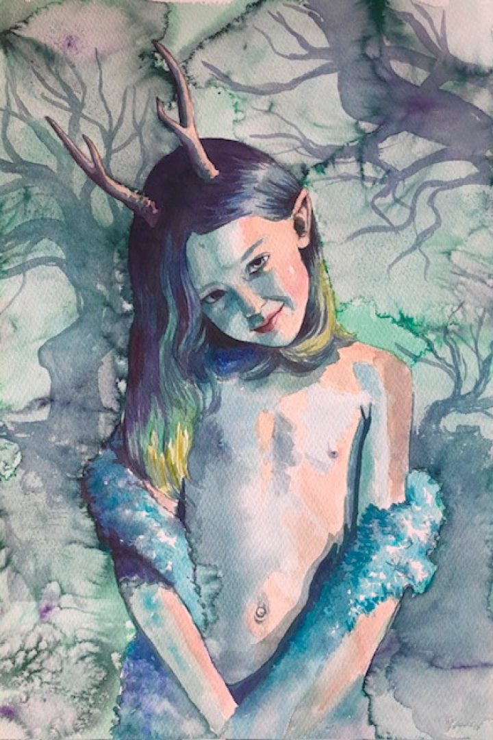 Alexandra Unger is a Swedish artist who grew up in Rome. Her roots immersed her in Scandinavian fairy tales and nature, while the Mediterranean sun brightened the colors of her work. Working primarily with watercolor on paper, Alexandra creates portraits and fantastical illustrations that explore childhood memories and the perception of reality.