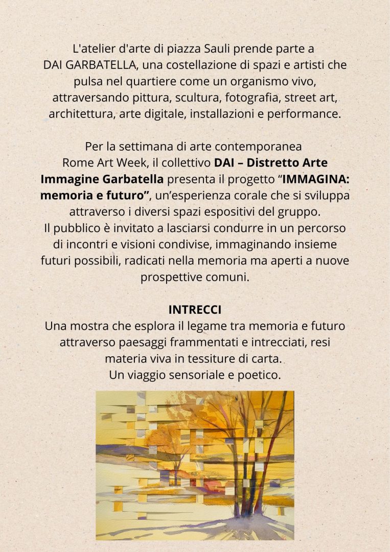 Since June 2022 she opens her own studio in the heart of Garbatella (Piazza Sauli 5), where she paints, shows her work and hosts workshops, exhibitions and art courses.