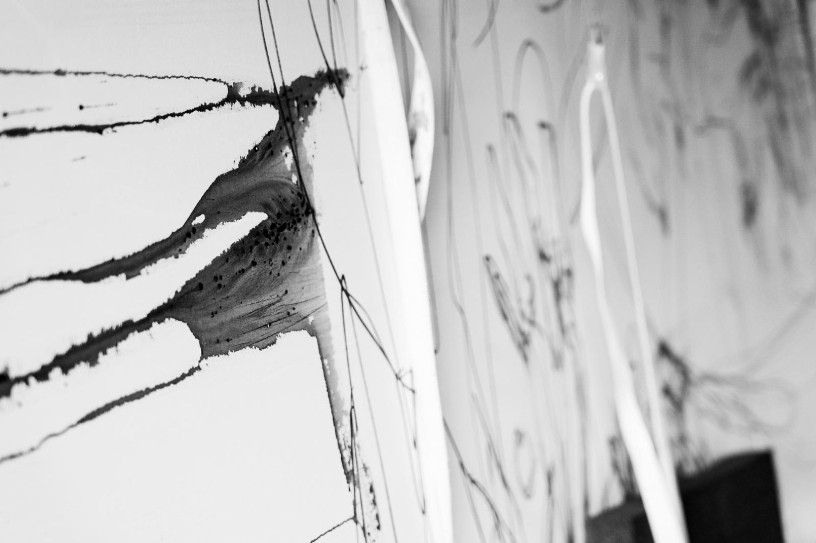 Il percorso prende avvio da una serie di 20 disegni di Hirano del 2017, che diventano modello per le nuove opere di Lange, realizzate in bianco e nero. Questo dialogo visivo conduce il visitatore lungo una progressione che culmina nella luce bianca delle ceramiche di Hirano a suggellare il passaggio tra ombra e chiarezza, morte e rinascita.
