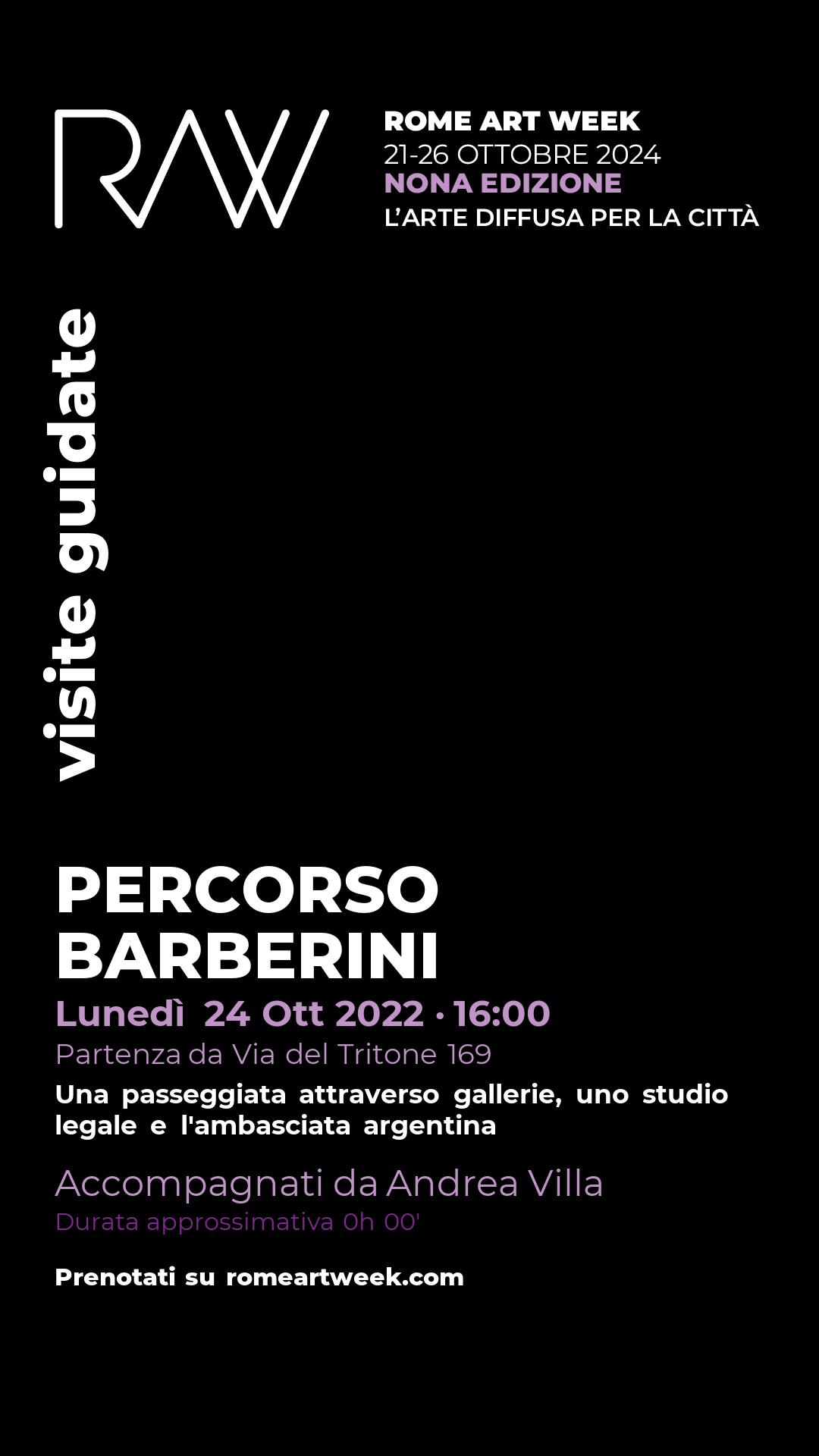 Passeggiata tra le meraviglie del Rione Colonna la cui visita prevede: Casa ARGENTINA appartenente alla Ambasciata di Argentina dedicata alla promozione della cultura argentina, Galleria internazionale Gagosian, Galleria internazionale Continua, Studio Legale Legal4Transport che offre i propri spazi per l'esposizione di opere d'arte contemporanea