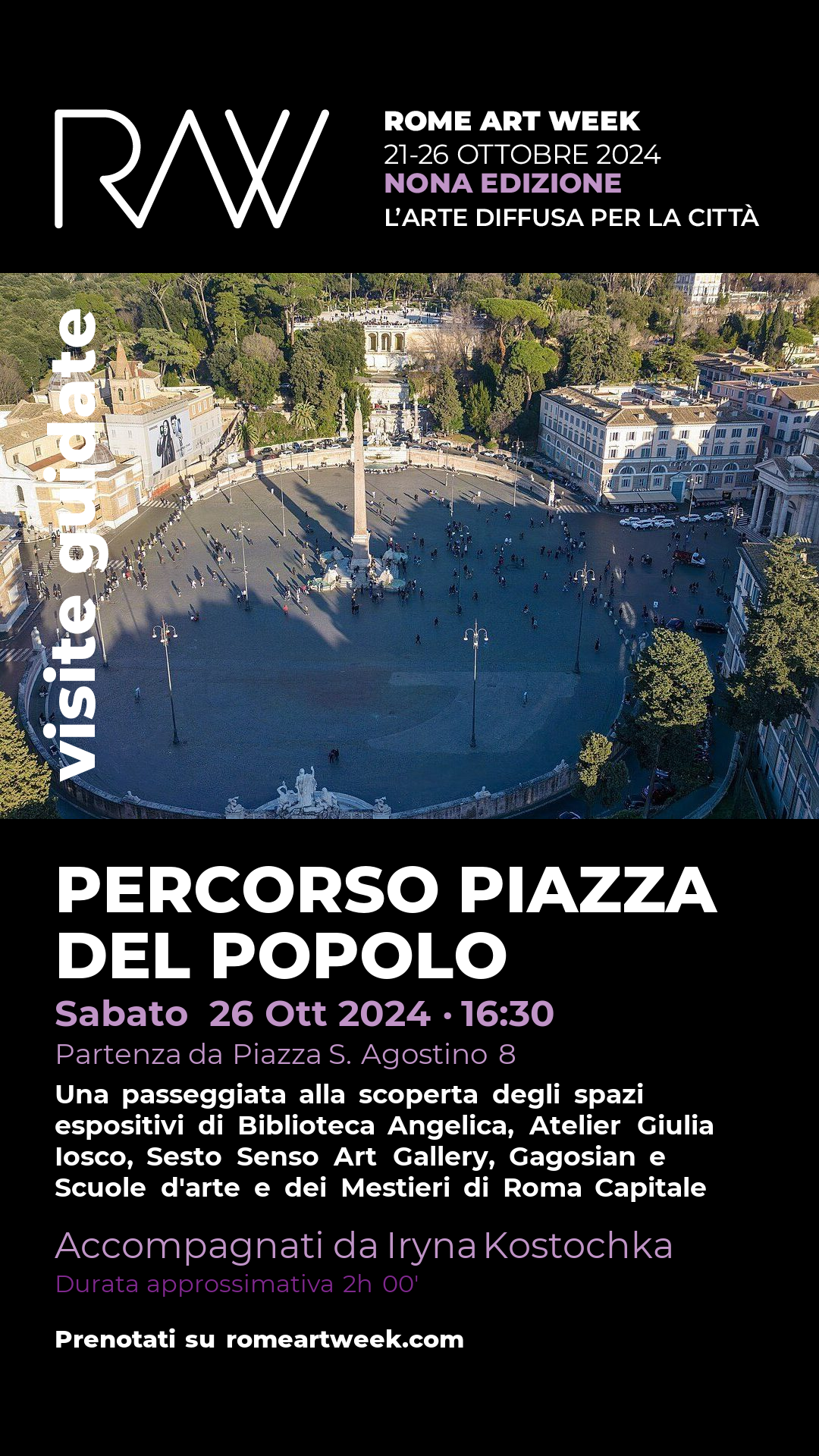 L'itinerario artistico della zona vicina a Piazza del Popolo guiderà i partecipanti attraverso un itinerario culturale che unisce spazi espositivi di grande rilievo. Questi luoghi, dedicati alla sperimentazione artistica e alla contaminazione tra discipline, accoglieranno mostre e installazioni che riflettono la vivacità creativa del quartiere. Durante l'evento, sarà possibile entrare in contatto diretto con gli artisti e le loro opere, scoprendo nuove prospettive sul rapporto tra arte, spazio urbano e comunità. Una vera e propria esplorazione della scena artistica contemporanea del centro di Roma.