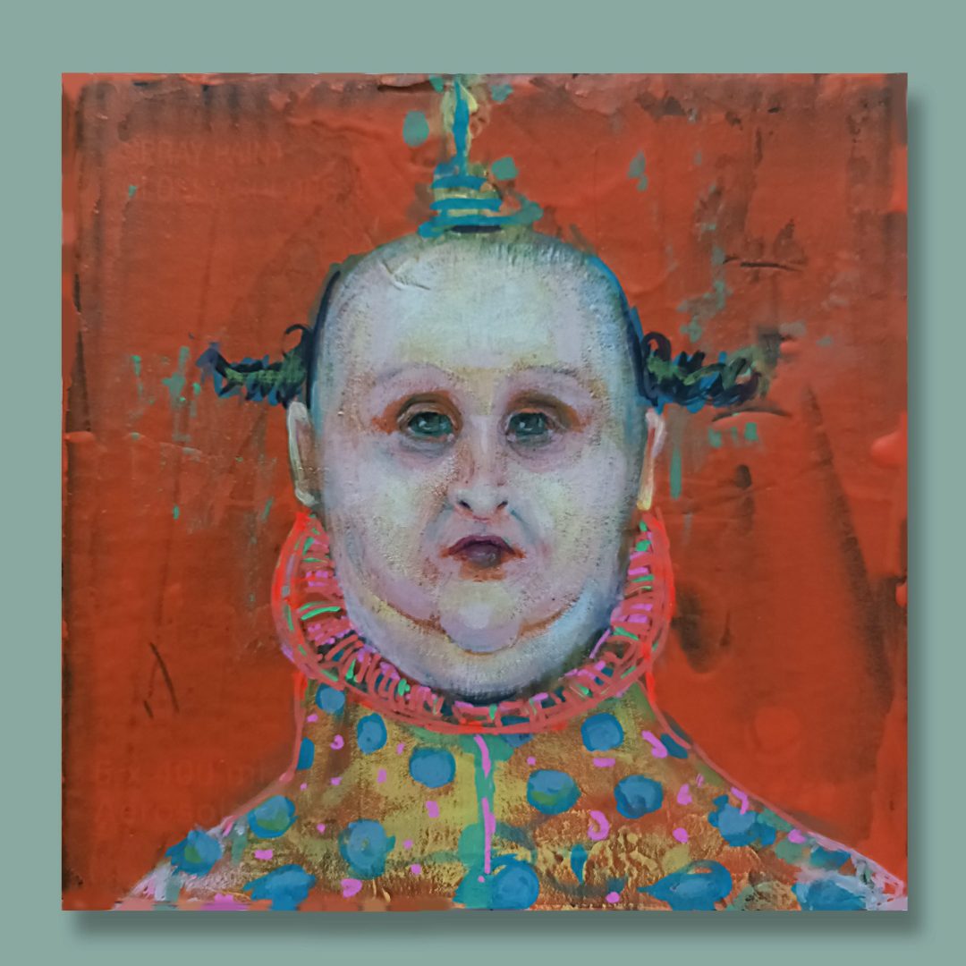 Through symbolic portraits, I seek to explore essential aspects of the human experience: vulnerability, humour, tragedy, ambiguity, and the existential condition. The narrative is not explicit but is built through gestures, compositions, colours, and textures that suggest rather than state.