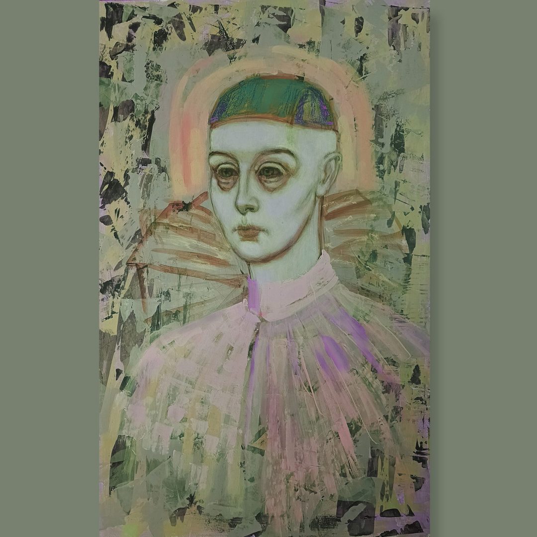 My pictorial work revolves around the creation of figures that oscillate between melancholy and playfulness, irony and fragility. These images function as visual fictions that invite reflection on the contradictions of the present, proposing emotional narratives with which the viewer can identify, be moved, or feel unsettled.