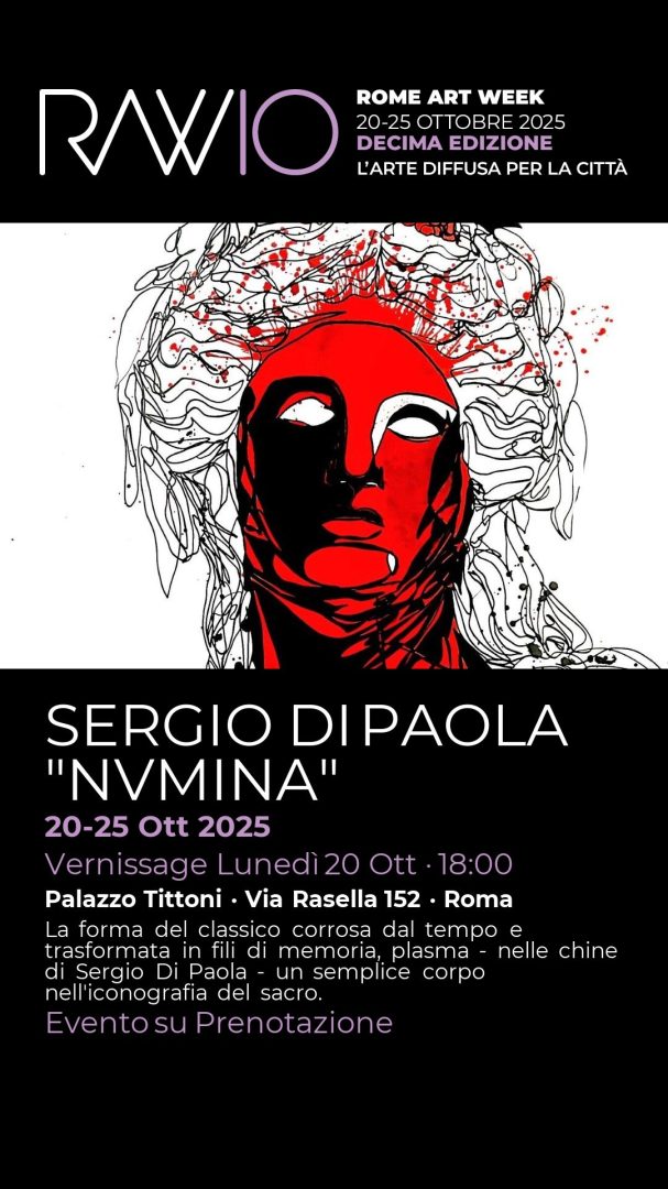 La forma del classico corrosa dal tempo e trasformata in fili di memoria, plasma - nelle chine di Sergio Di Paola - un semplice corpo nell'iconografia del sacro. Evento su Prenotazione Vernissage Lunedì 20 Ott 2025 | 18:00-20:00