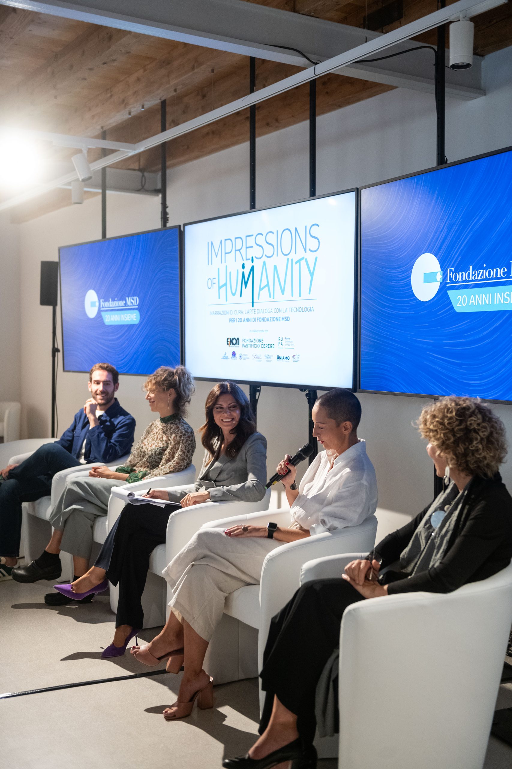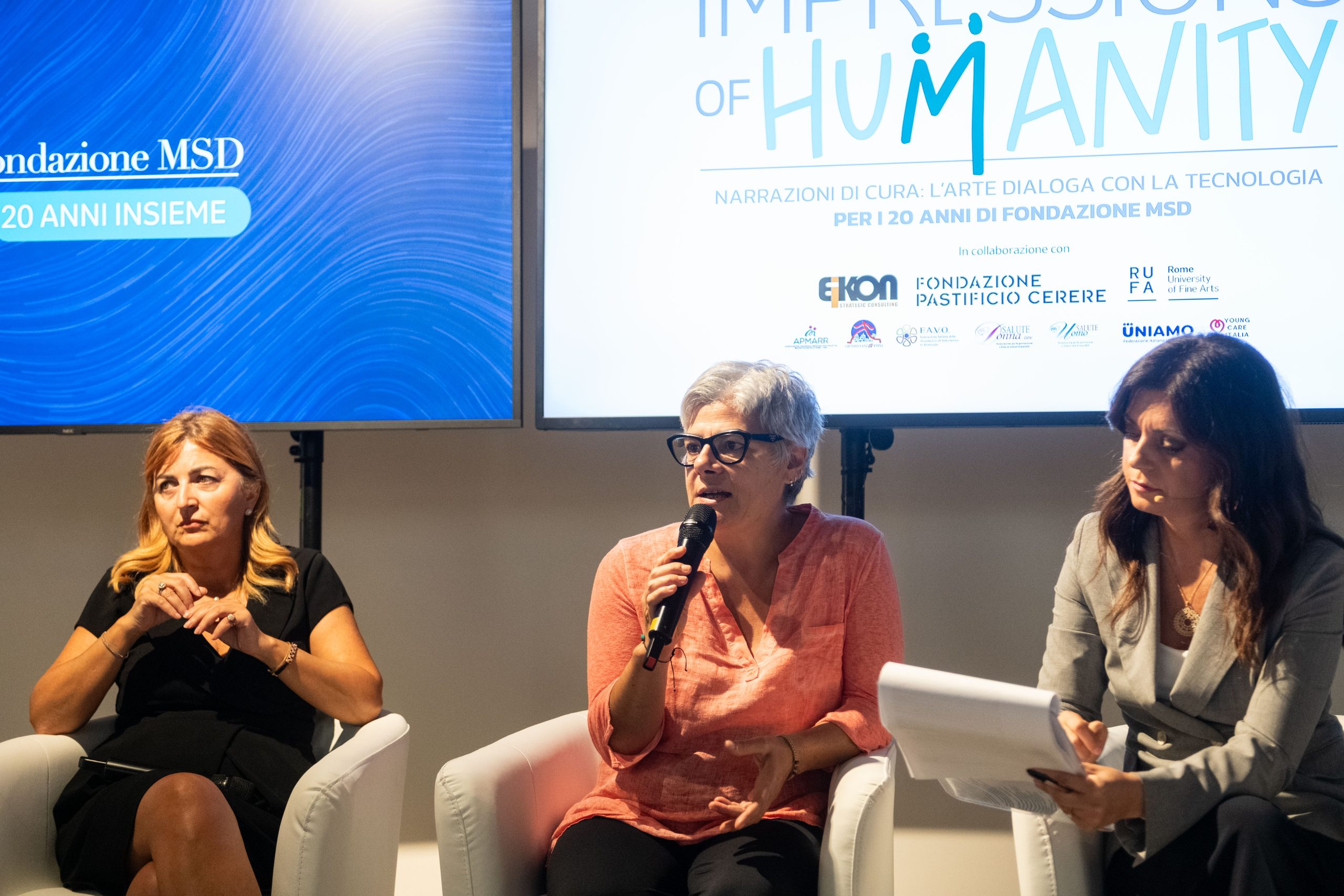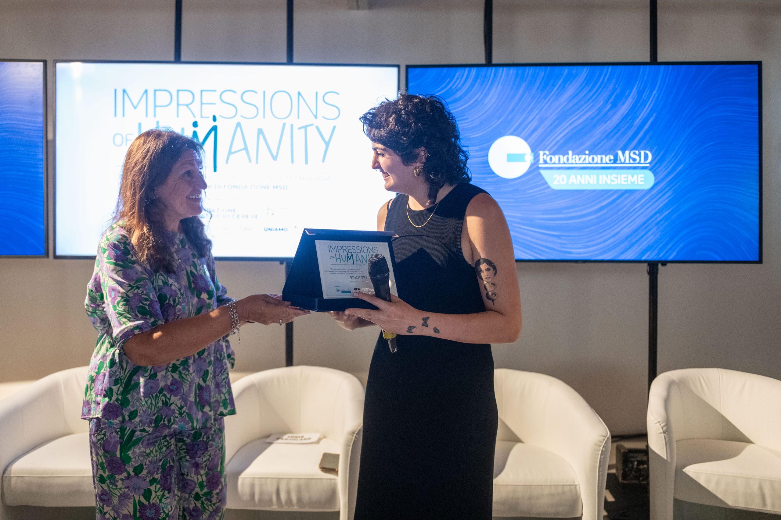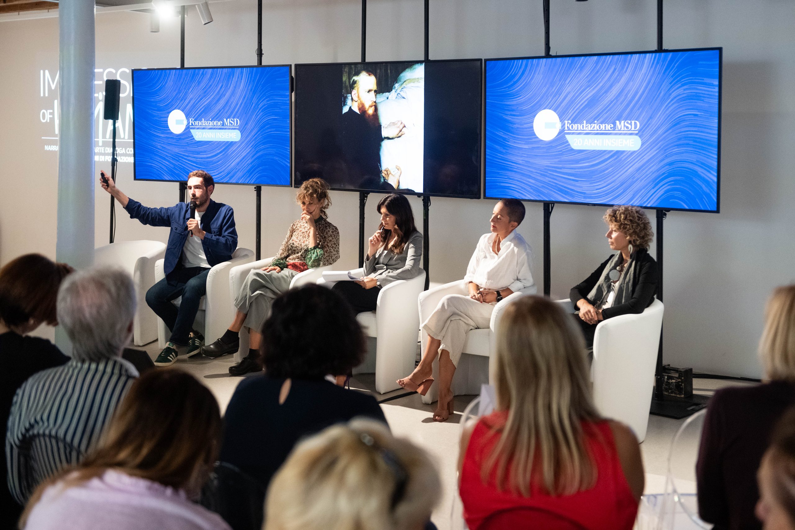 Le opere in mostra nascono nell’ambito del progetto Impressions of Humanity, ideato e promosso in occasione del ventesimo anniversario della Fondazione MSD e realizzato in collaborazione con RUFA, Eikon Strategic Consulting Italia Società Benefit, Fondazione Pastificio Cerere, e un network di Associazioni di Pazienti e Caregiver.