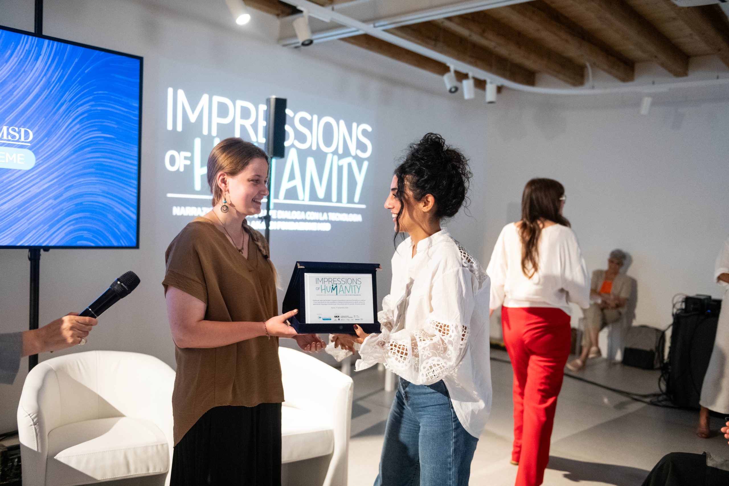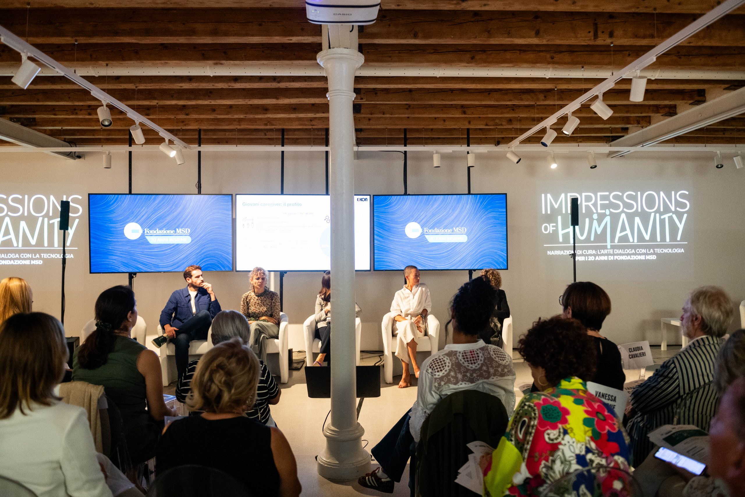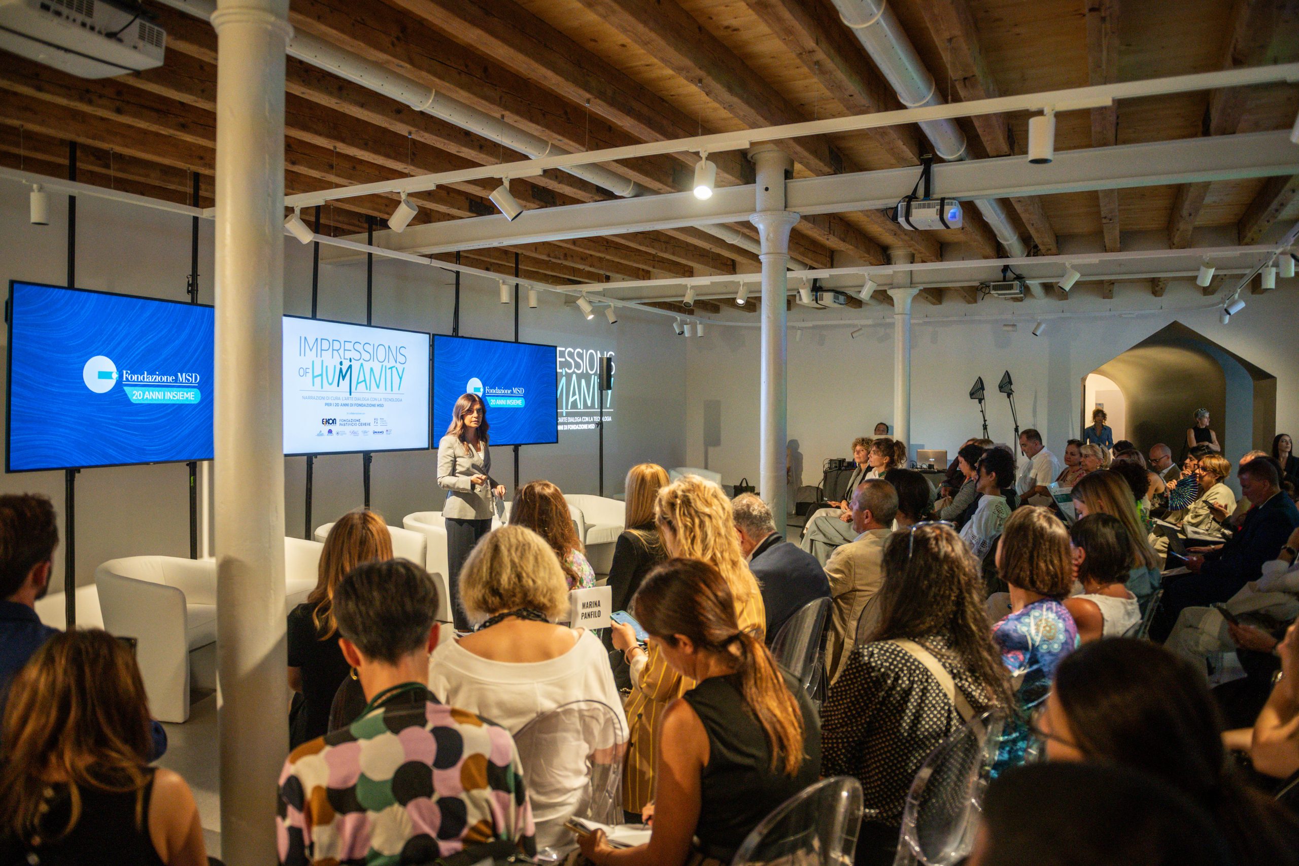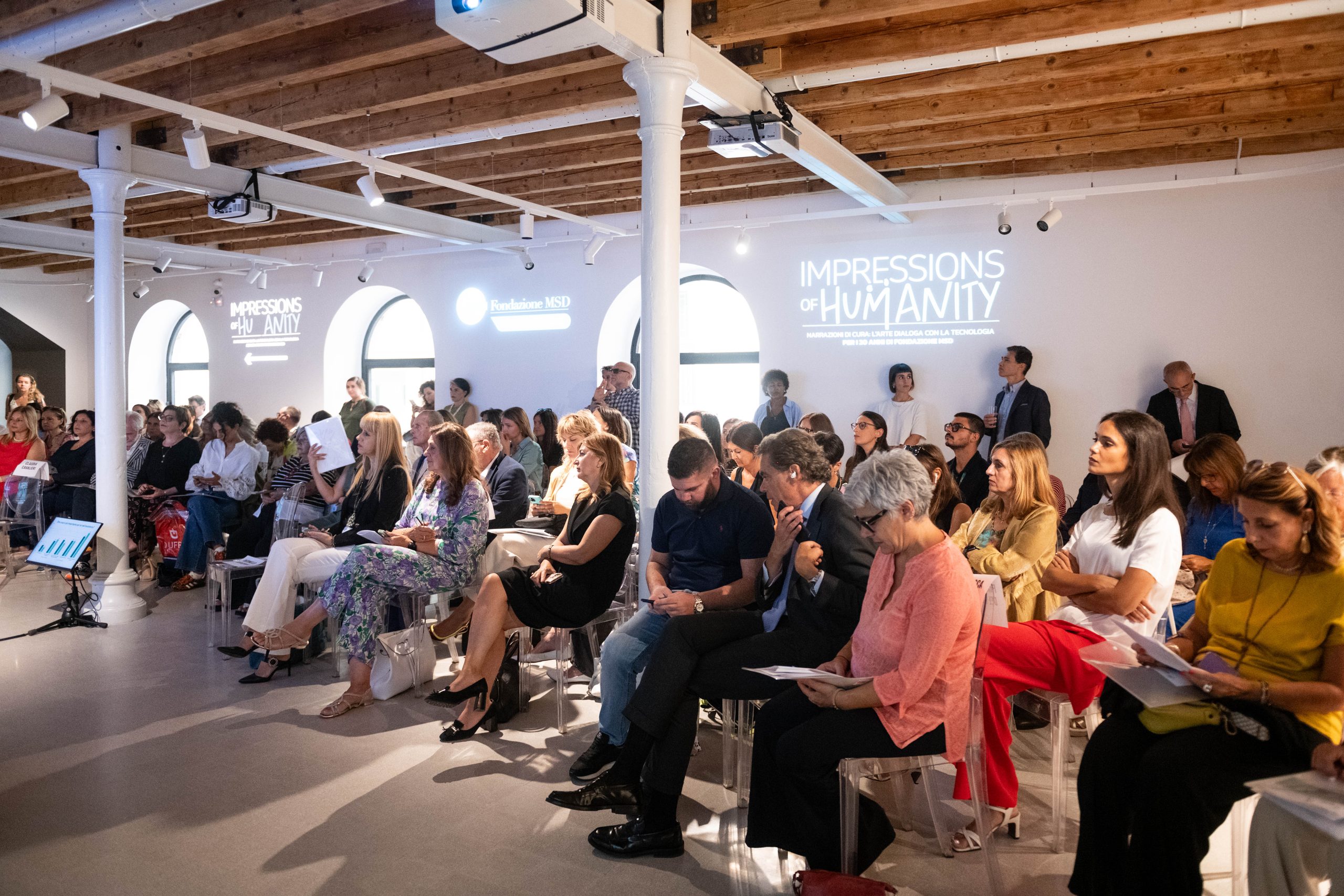 Le opere in mostra nascono nell’ambito del progetto Impressions of Humanity, ideato e promosso in occasione del ventesimo anniversario della Fondazione MSD e realizzato in collaborazione con RUFA, Eikon Strategic Consulting Italia Società Benefit, Fondazione Pastificio Cerere, e un network di Associazioni di Pazienti e Caregiver.