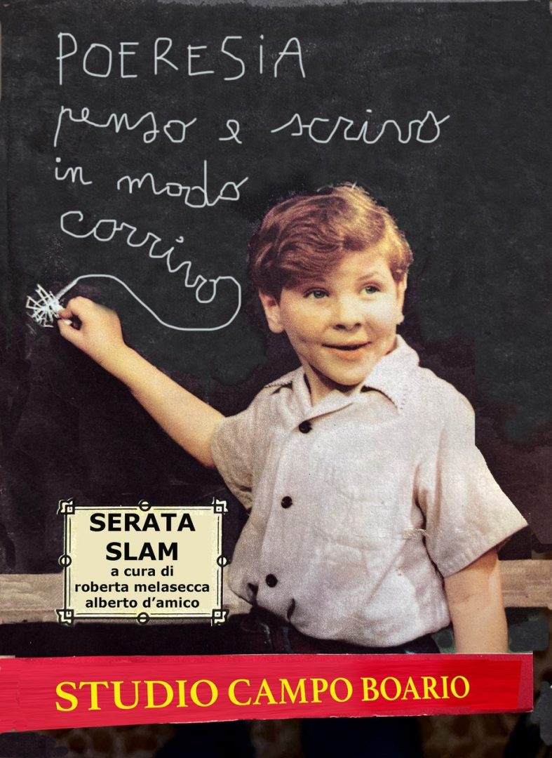 Sabato 25 ottobre dalle ore 21.00, all’interno della settimana dell’arte contemporanea, Roberta Melasecca e Alberto D’Amico invitano ad una serata-slam: POERESIA. Penso e scrivo in modo corrivo.