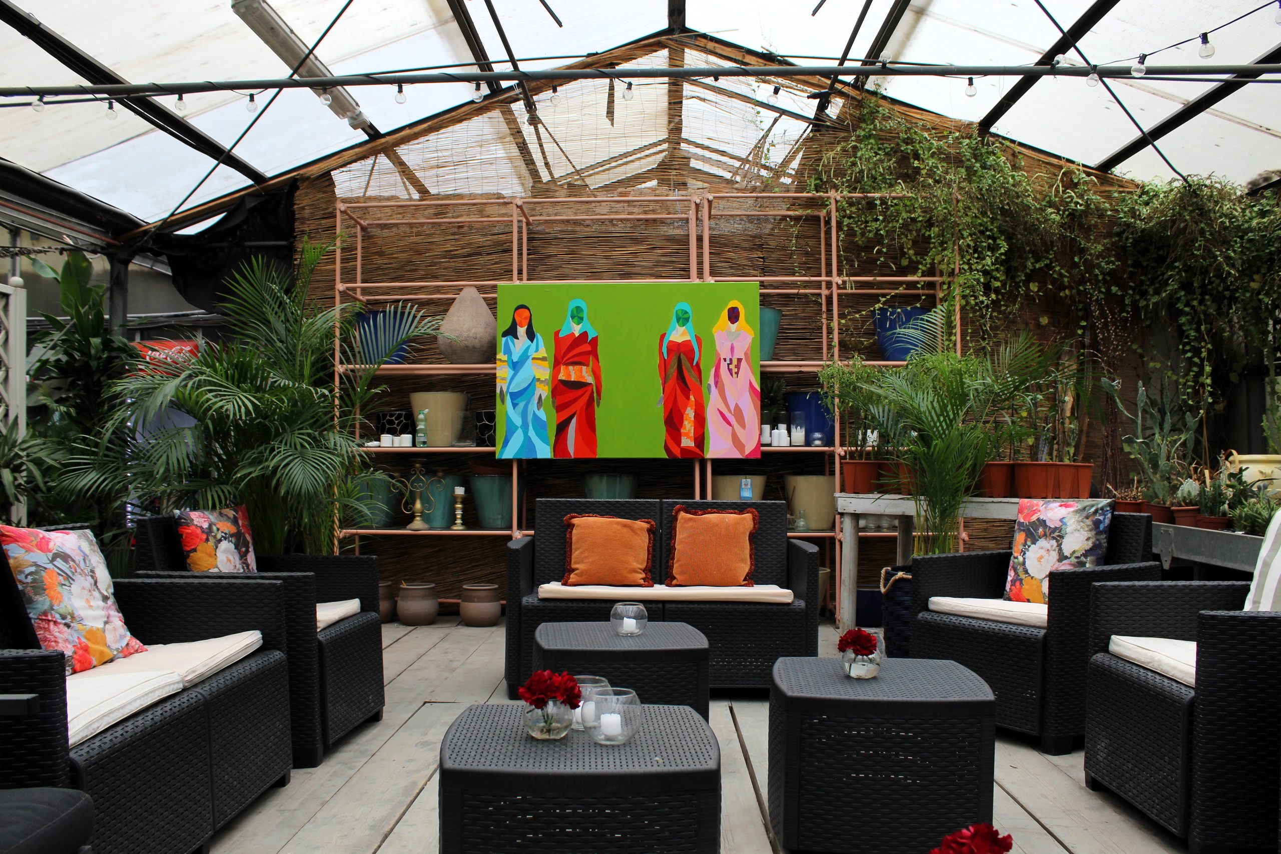 Le opere instaurano poi un dialogo organico con il luogo che le ospita, i Vivai Mari, qui i corpi femminili si specchiano nella vitalità delle piante e dei fiori che li circondano. Esattamente come la natura, la figura muliebre diventa così simbolo di fertilità, rigenerazione e ciclicità, condividendo con il mondo vegetale una struttura generativa comune: il gineceo, la parte del fiore che, dopo la fecondazione, dà origine al frutto, analogamente al sistema riproduttivo femminile umano che genera la vita.
